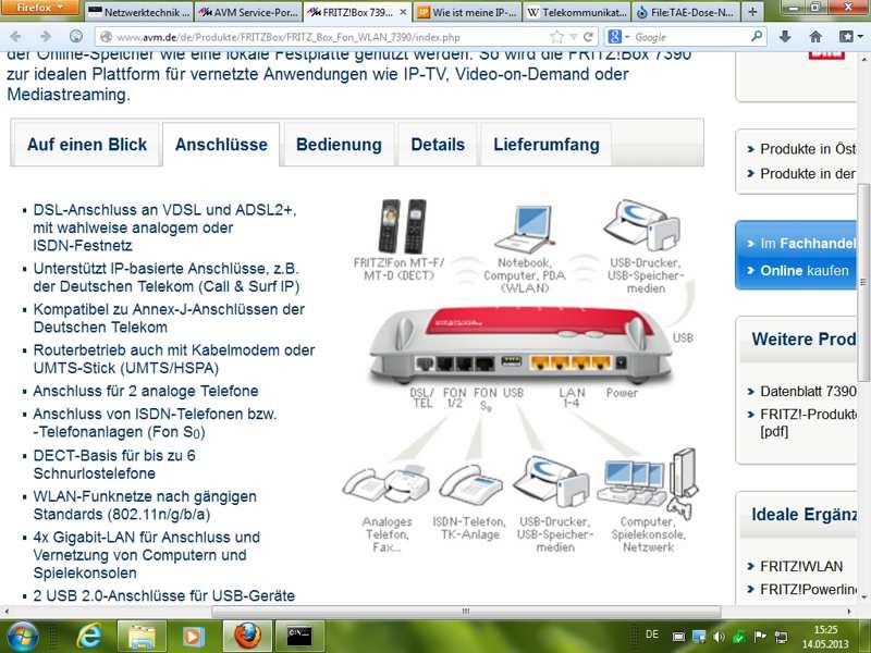 Betrieb in digitaler ISDN-Technik mittels NTBA, für den Anschluss analoger Endgeräte A/B-Adapter bzw. Einsatz kompletter TK-Anlagen