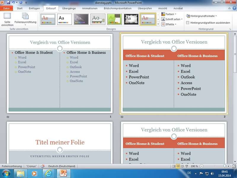 Bearbeitung und Anpassung der "Formatierungen und Designs" unserer Präsentationen