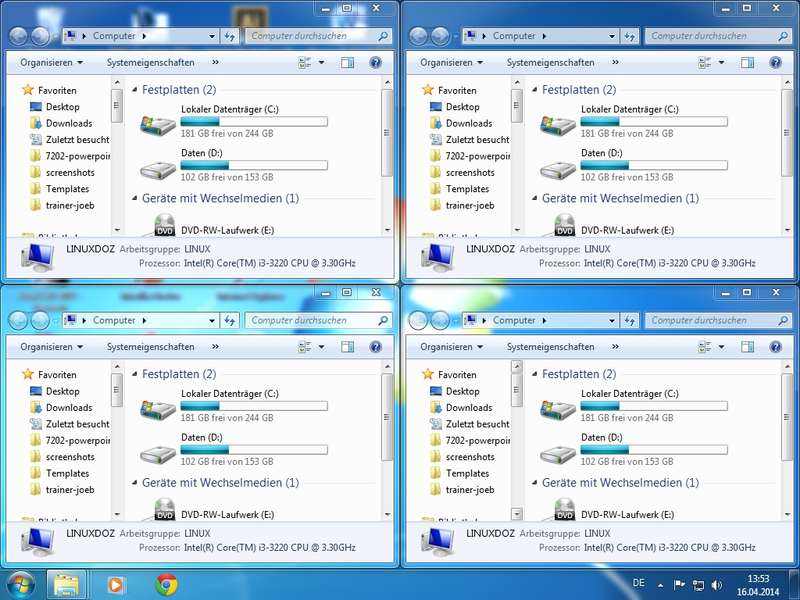Aero-Desktop mit transparenten Fenstern (Opazität); Desktop Symbole anzeigen /nicht anzeigen