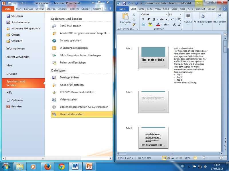 hier beispielhaft mit PowerPoint und Word - beliebige Programme in Kombination möglich