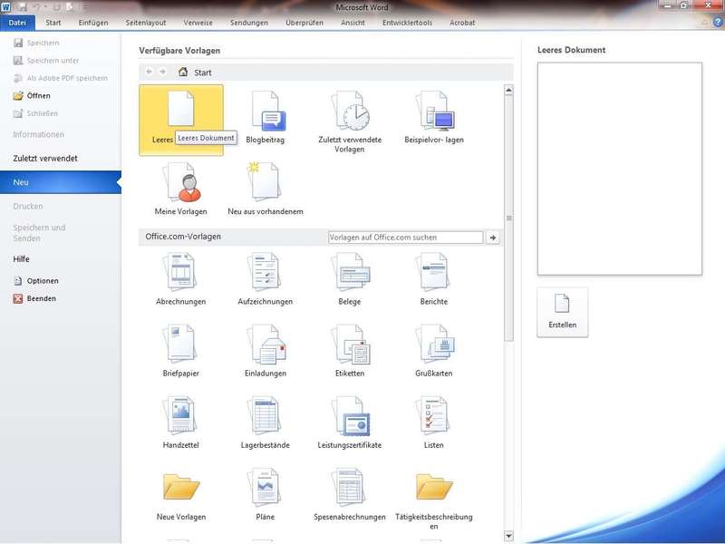 Standardvorlage für "Leeres Dokument": Normal.dotm