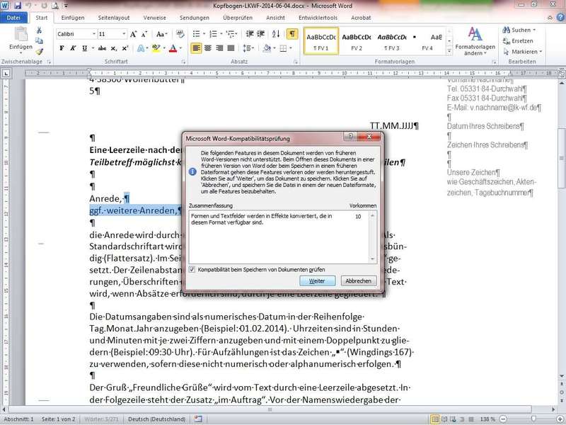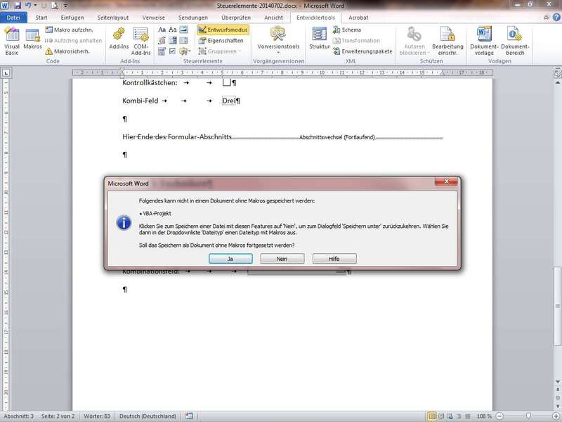 hier müssen geeignete Dokumentformate genutzt werden: *.doc, *.docm, *.dotm