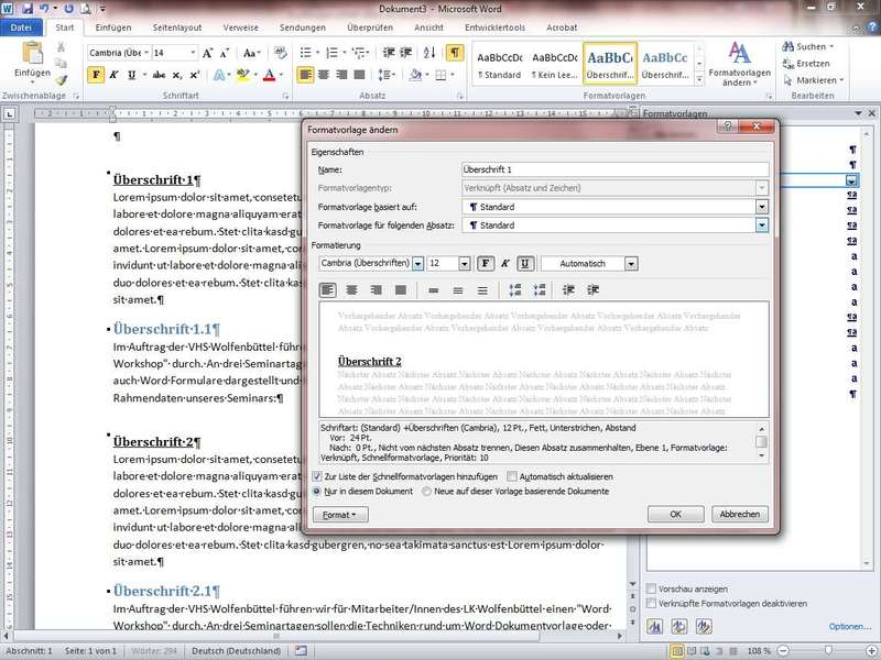 Im Auftrag der VHS Wolfenbüttel führen wir für Mitarbeiter/Innen des LK Wolfenbüttel einen "Word Workshop" durch. An drei Seminartagen sollen die Techniken rund um Word Dokumentvorlage oder auch Word Formulare dargestellt und für die täglichen Anwendungen erarbeitet werden. Hier die Rahmendaten unseres Seminars: