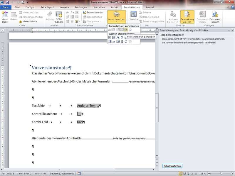 To-Do: Übungen Formulare, Doks schützen, Seriendruck - Tipp zu Word 2003 vs. 2010