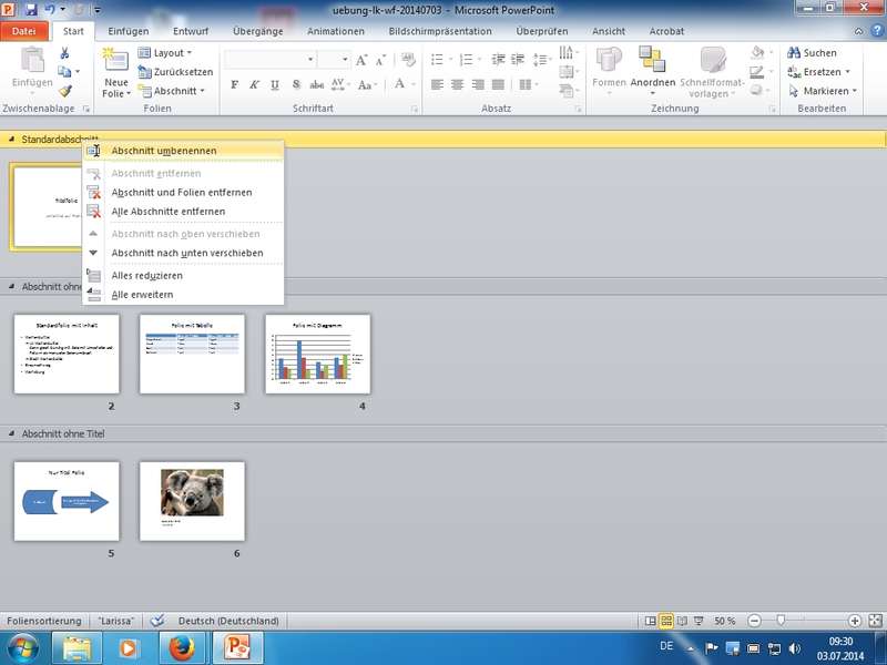 Nutzung von Abschnitten zur besseren Ordnung in der Gesamtansicht und Organisation von "großen" Präsentationen - Videotutorials / Infos zu PowerPoint 2013