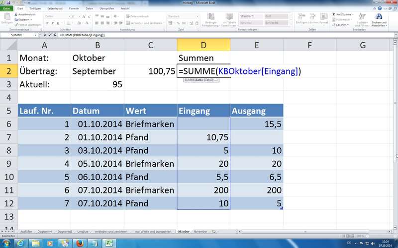 am Beispiel SUMME(); Eingabe mittels Maus und/oder Tastatur