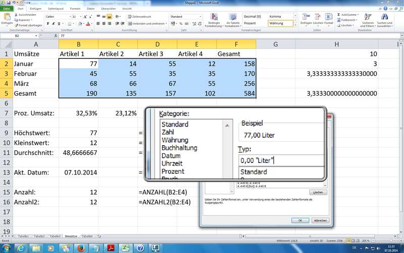 Buchhaltung vs. Währung (Ausrichtung in Zelle beachten), Prozent, Dezimalstellen, Datum & Uhrzeit - Zellbezüge (relativ und absolut)