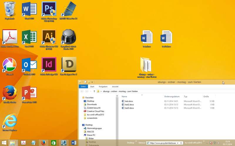 Wichtig: Windows ist "non case sensitive" - soll heißen: kann Groß-/Kleinschreibung nicht unterscheiden; das haben wir auch gleich getestet: auf Desktop Ordner "test" vs "TEST" - Word 2013