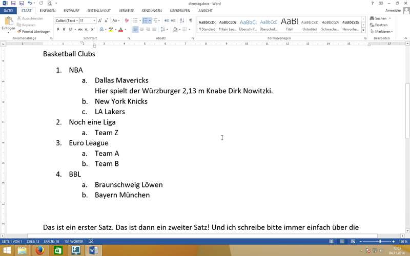 Umschalten und Cursor für Tastaturmarkierung, Pos1 / Ende (Anfang / Ende Zeile); mit Strg lässt sich auch Wortweise springen/markieren - Nummerierungen / Aufzählungen