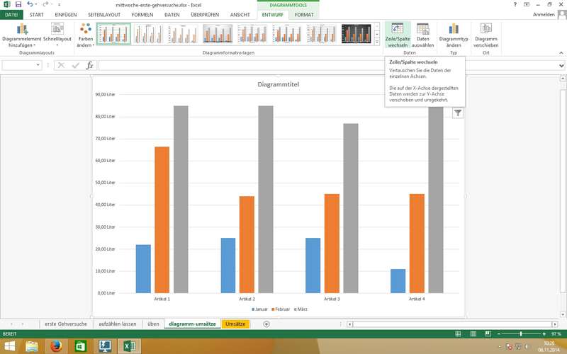 effektive neue Diagrammvorlagen möglich; Formatierungen und speichern von Diagramm-Vorlagen in Standardverzeichnis Charts der Template-Office-Struktur, siehe neue/eigene Ribbons Diagrammtools (Entwurf, Layout, Format) beachten - Funktionen
