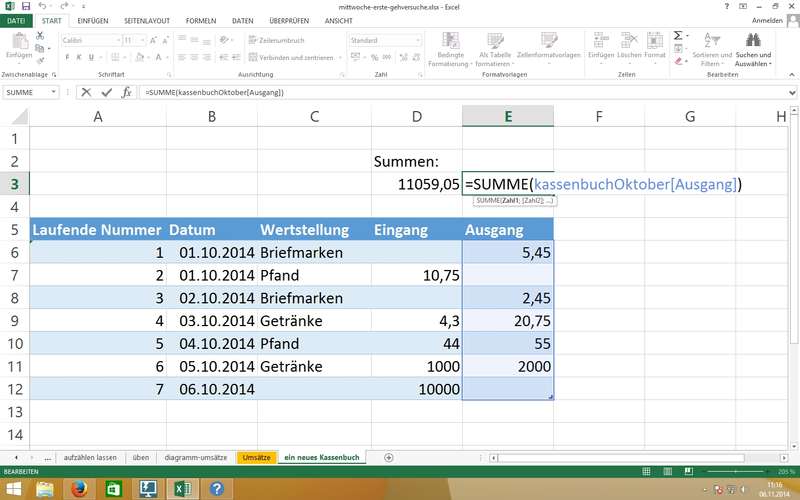 so lassen sich auch "Formeln" in Zellen eintragen - Erste Formeln/Funktionen