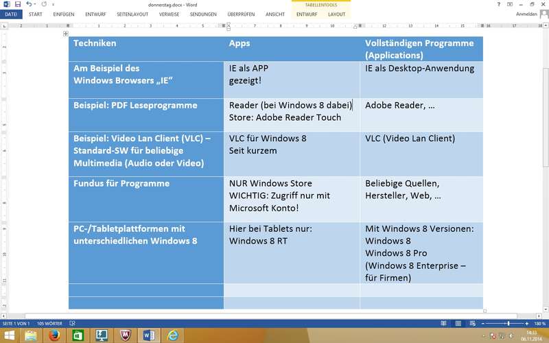 siehe Screenshot unten; siehe als Standardbeispiel auf Windows 8 Rechnern: IE (Internet Explorer - Browser von Microsoft) als App und vollständige Anwendung; Wichtig: Windows Store nur mit Microsoft Konto zugängig! - Forts mit PowerPoint 2013