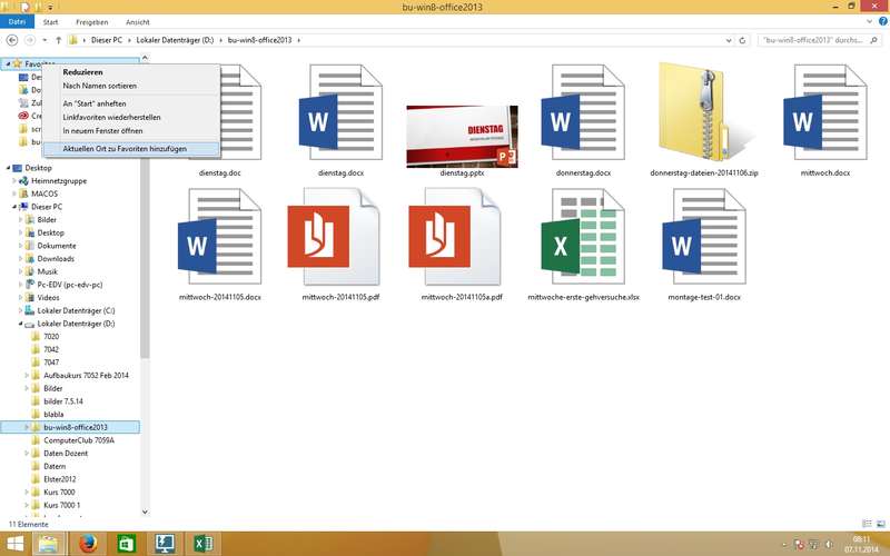 Beim Windows 8 Microsoft Konto sind direkt mit dem Office 2013 die OneDrive Dateien bearbeitbar, als hätte man die Dateien auf seinem lokalem System (natürlich "etwas" langsamer beim Öffnen/Speichern) - Übungsordner der Seminarwoche gelöscht