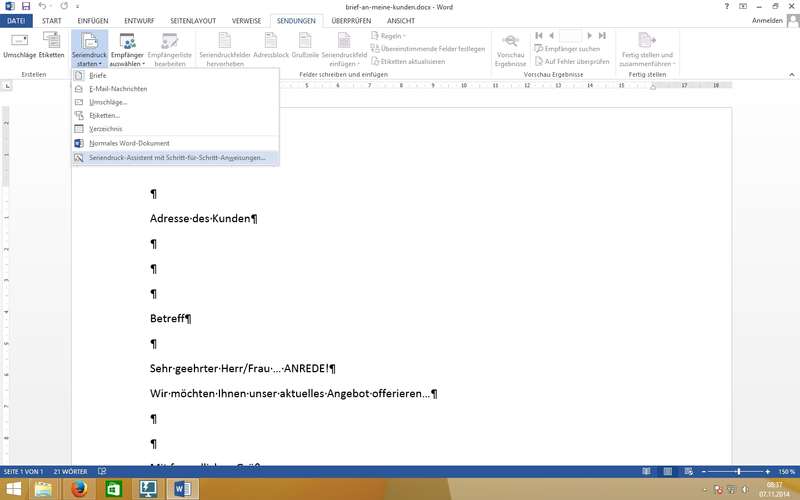 Excel 2013 - Kundenliste (für späteren Seriendruck)