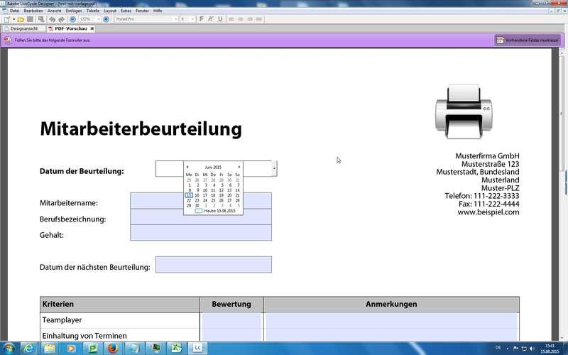 Erstellungsprozess (s.o) exemplarisch durchgeführt und die automatischen Felderkennungen von Acrobat entdeckt und eingeschätzt