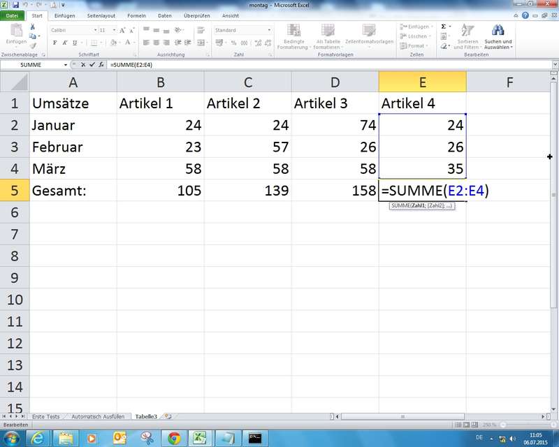 am Beispiel SUMME(); Eingabe mittels Maus und/oder Tastatur