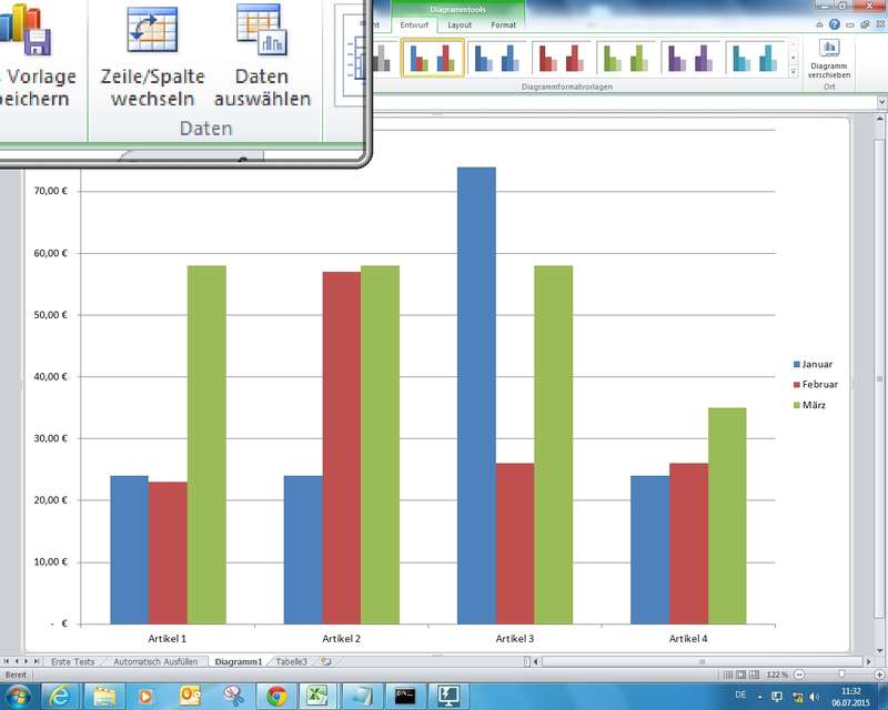 effektive neue Diagrammvorlagen möglich; siehe neue/eigene Ribbons Diagrammtools (Entwurf, Layout, Format) beachten