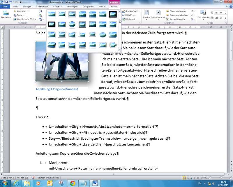Tipp: Bilder mit Schnellformatvorlagen (Effekten / Rahmungen / Schatten / Spiegelungen) versehen
