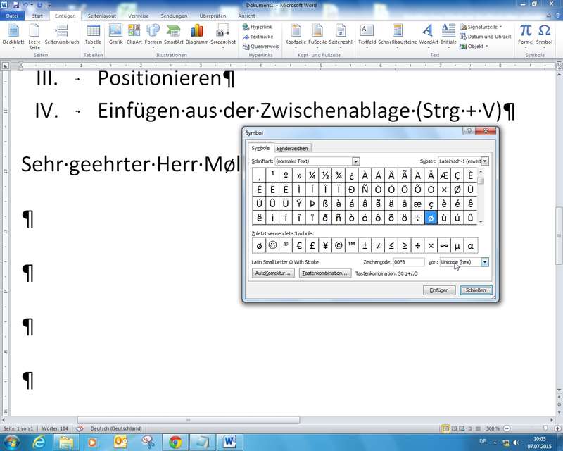 Alles Markieren (Strg + A); Umschalten und Cursor für Tastaturmarkierung, Pos1 / Ende (Anfang / Ende Zeile) - Manuelle Sonderzeichen
