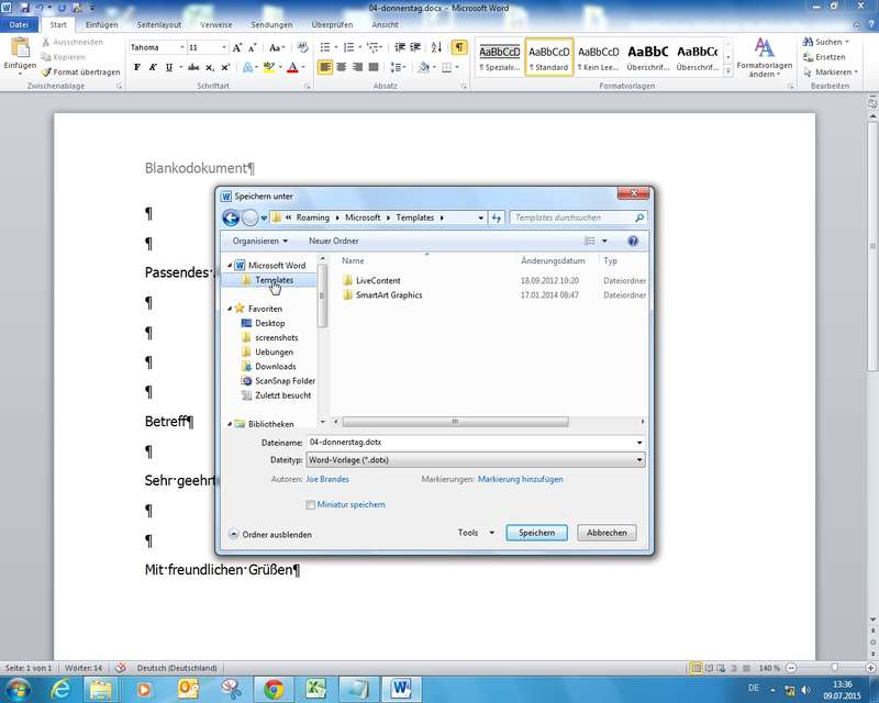 Pfad auf Win7/Office 2010: C:\Benutzer\UserName\AppData\Roaming\Microsoft\Templates