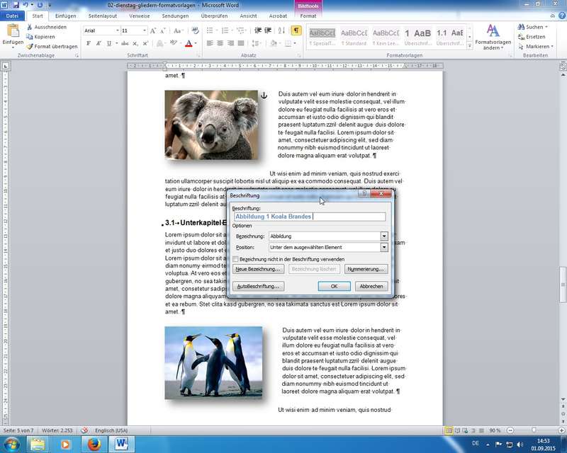 Bilder: über Rechte Maus Beschriftungen für die Bilder erstellt und danach ein komplettes Abbildungsverzeichnis eingefügt! - Ansicht: Gliederung