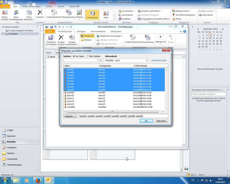 Praxis mit Outlook-Kontakten: