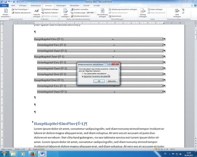Tipp: Feldfunktionen aktualisieren mit F9, oder natürlich Rechte Maus - Feldfunktionen aktualisieren