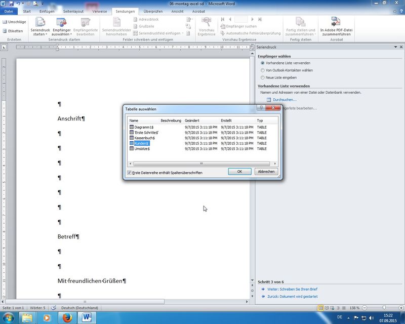 Outlook nutzen für Seriendruck (Briefe, E-Mails)