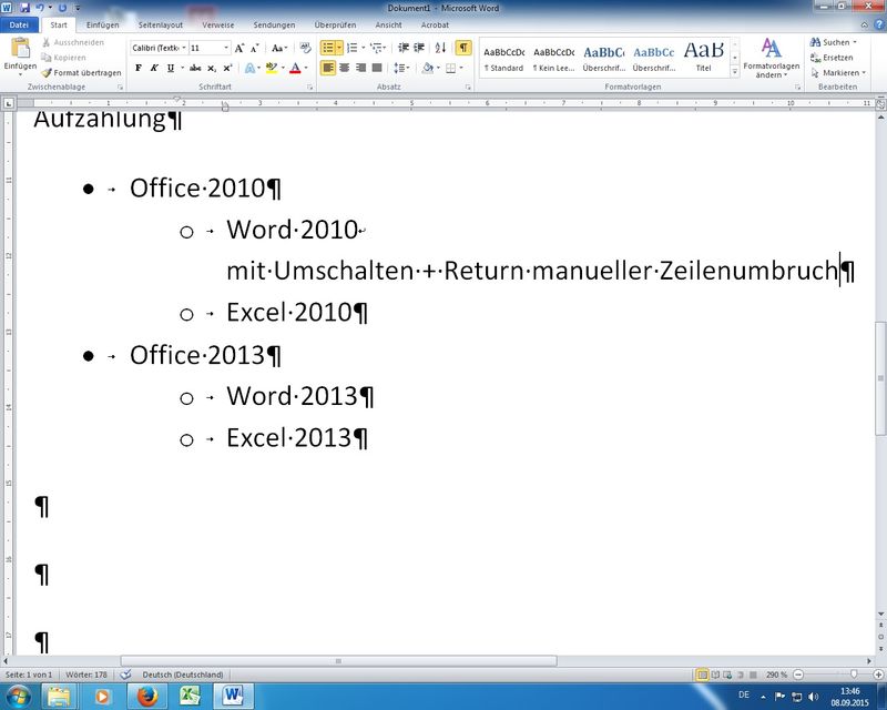 nicht im Seminar: bedingter Trennstrich (Strg + -), geschützte Trennstriche und Leerzeichen (jeweils mit Umschalten + Strg) - Nummerierungen / Aufzählungen
