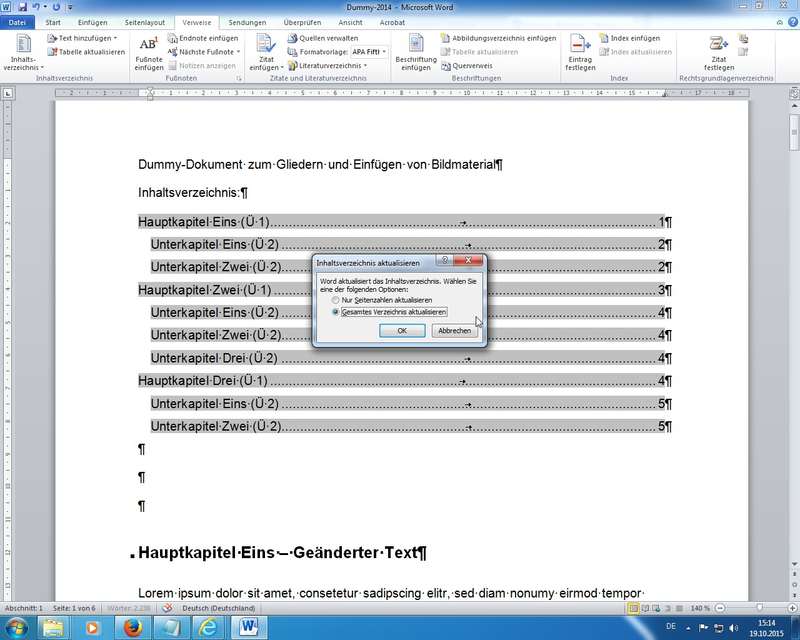 Tipp zu Bildern und Tabellen: über Rechte Maus Beschriftungen für die Bilder erstellt und danach ein komplettes Abbildungsverzeichnis eingefügt!