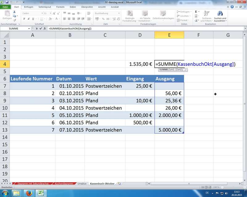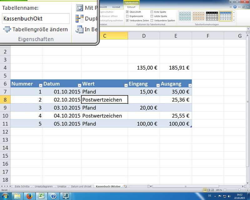 neue 2007/2010er Technologie - unterschätzt als einfache "Design-Technik" zum Einfärben von Tabellenbereichen; unter der Haube aber komplett neue intelligente "Datenbank"-Technik mit einfachen und sicheren Möglichkeiten zum Sortieren und Filtern von Informationen; außerdem lassen sich diese Tabellenbereiche sinnvoll benennen und damit "sprechende" Formeln erzeugen: =SUMME(KassenbuchOkt[Eingang])