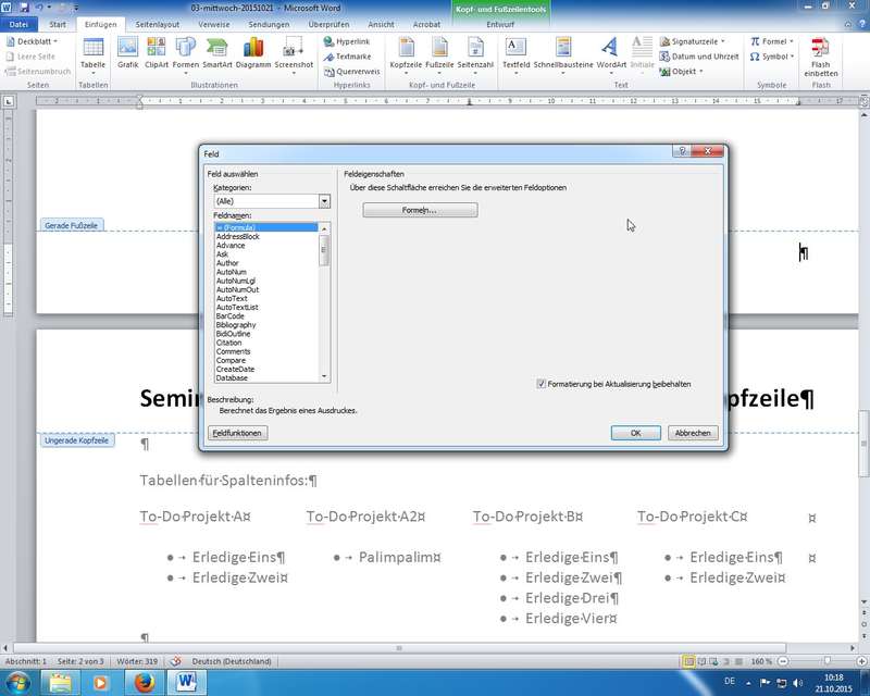 Tipp: Feldfunktionen aktualisieren mit F9, oder natürlich Rechte Maus - Feldfunktionen aktualisieren