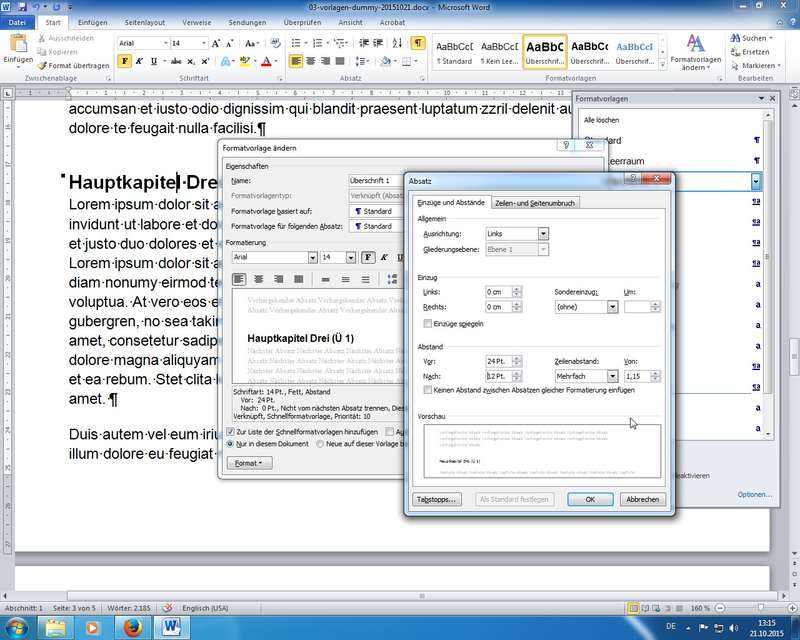 Übung zu den Formatvorlagen: Erstellung eines "Dummy"-Dokuments für die Übungen
