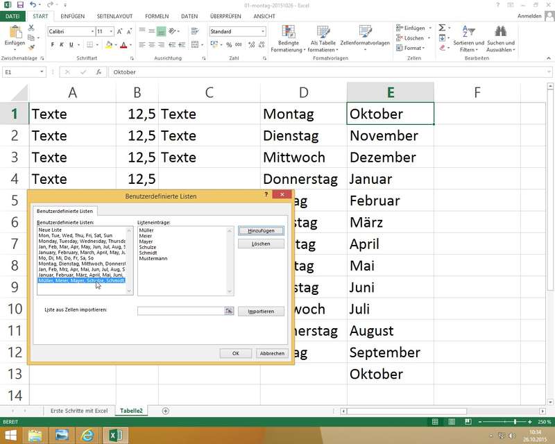 Excel 2010 / 2013: Excel-Optionen - Kategorie Erweitert - nach unten scrollen - Benutzerdefinierte Listen