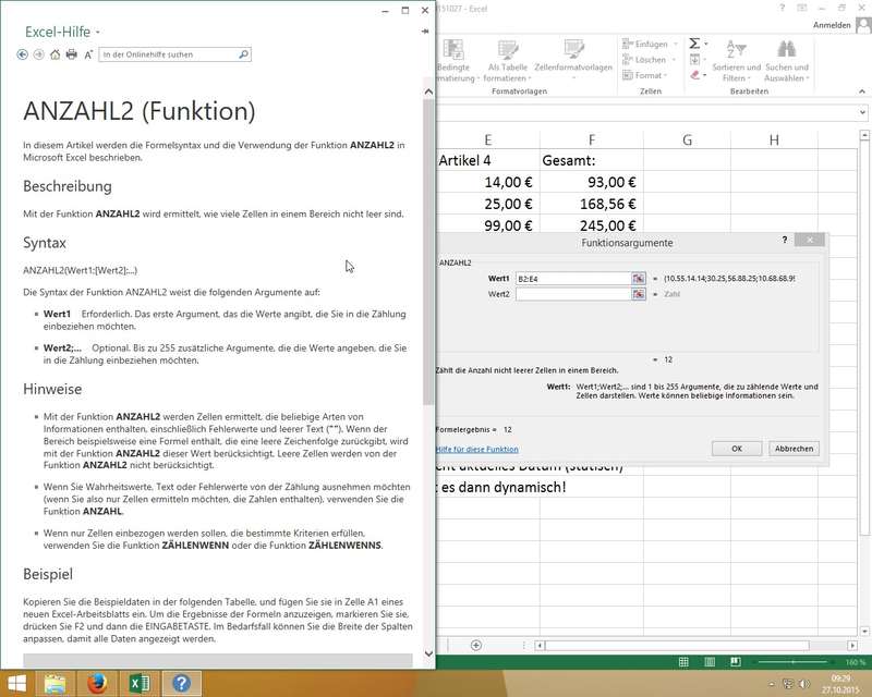 ANZAHL() vs. ANZAHL2() - Analyse von Zellbereichen mit Zahlen/Texten