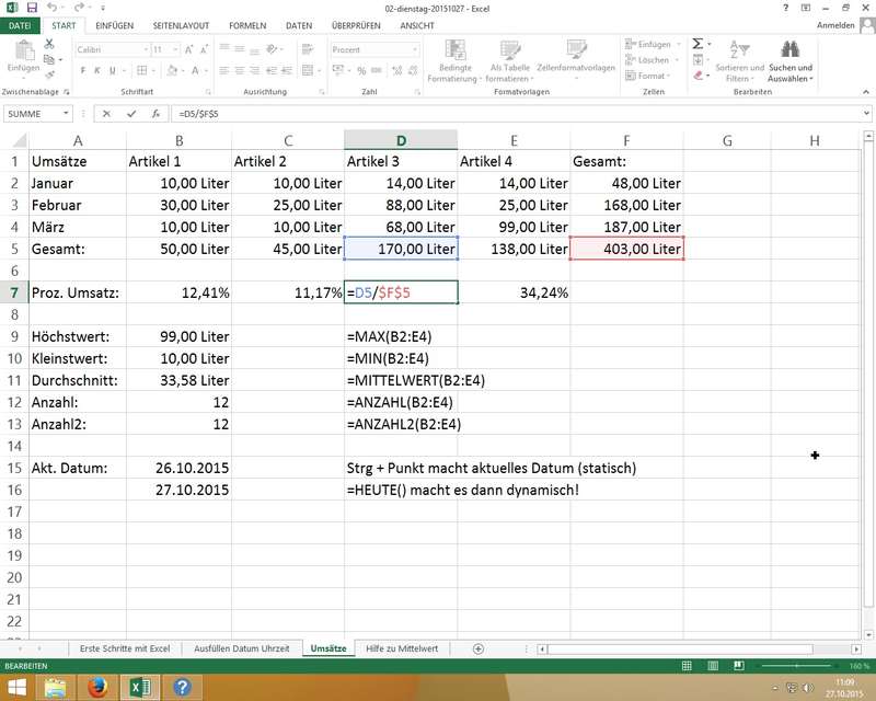 am Beispiel SUMME(); Eingabe mittels Maus und/oder Tastatur