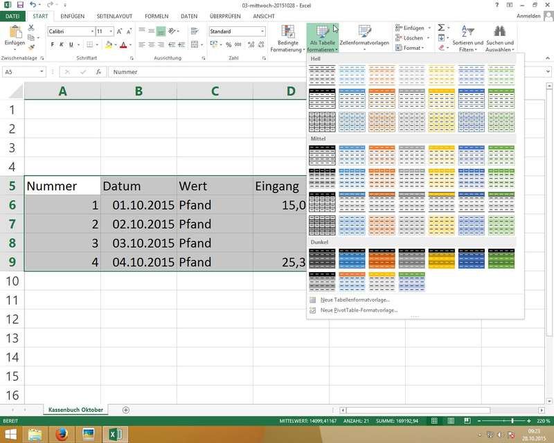 Tipp: mittels Transponieren kann man eine Tabelle "drehen/wenden" - also Spalten und Zeilen getauscht - Übung "Kassenbuch"