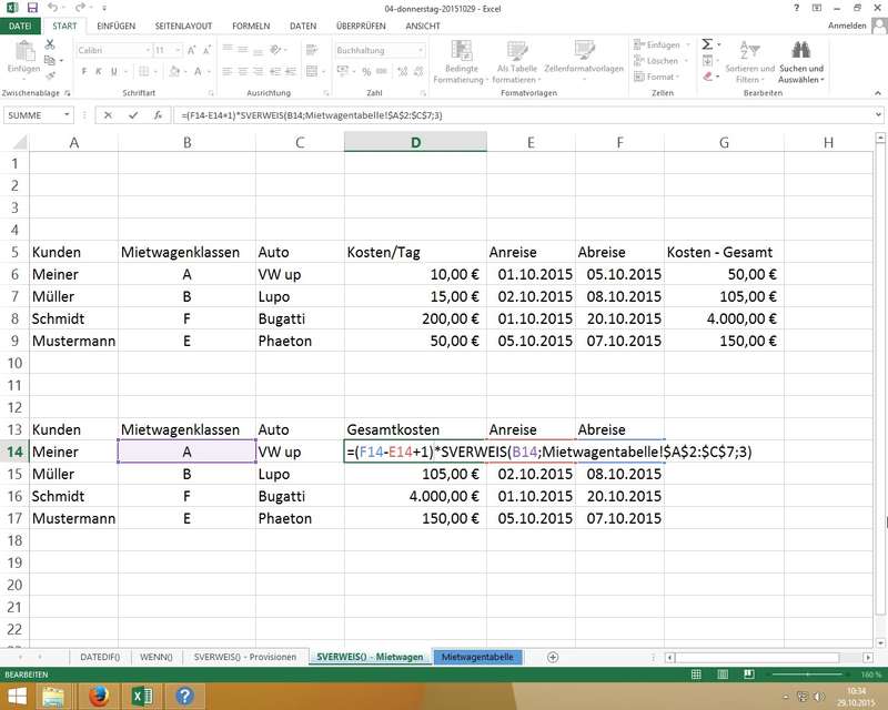 Wiederholende Übungen zum Dateihandling und den Favoriten (im Windows Explorer / Öffnen / Speichern unter) - SVERWEIS Funktion