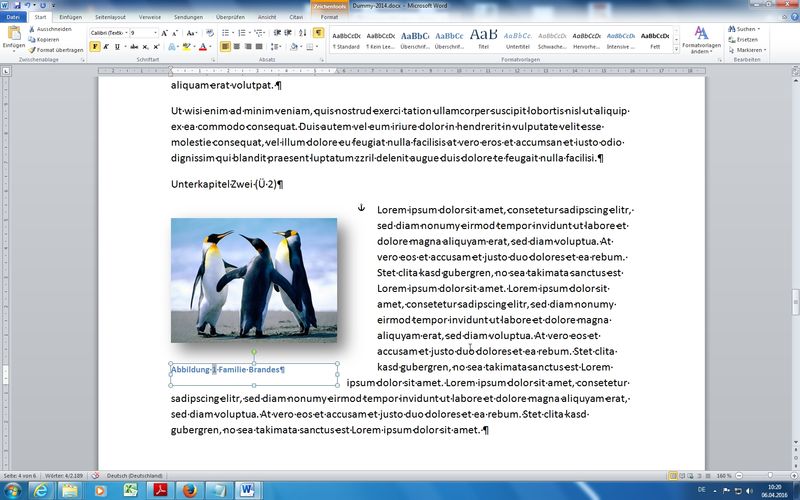 mit Hilfe von Zeilenumbruch (Rechte Maus oder Menübänder) den Textfluss um die Bilder konfiguriert und die Bilder mit Schnellformatvorlagen (Effekten / Rahmungen / Schatten / Spiegelungen) versehen