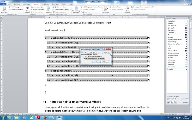 Übung zu den Formatvorlagen: Bereitstellung eines "Dummy"-Dokuments für die Übungen