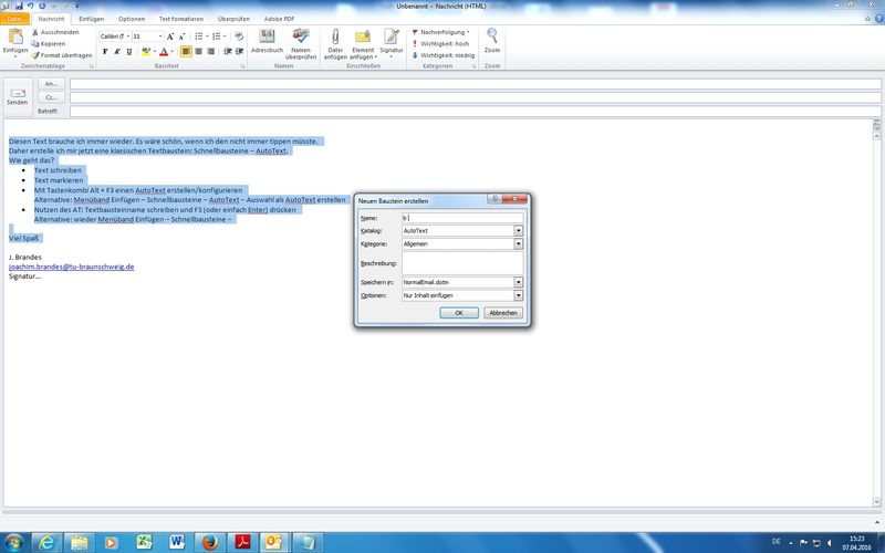 Visitenkarten als "Anhänge" per Mail übermitteln (*.vcf-Dateien) - Tipp: AutoTexte (klassisch: Textbausteine)