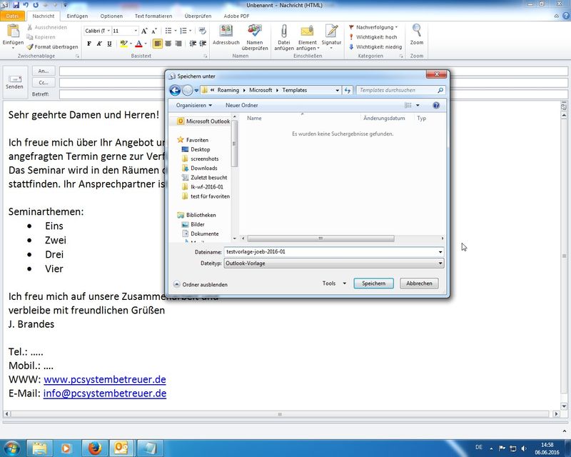Zu diesem Templates-Ordner gerne auch einen Favoriten in Ihrem Windows Explorer erstellen - dann lassen sich neue Mails per Doppelklick erzeugen!
