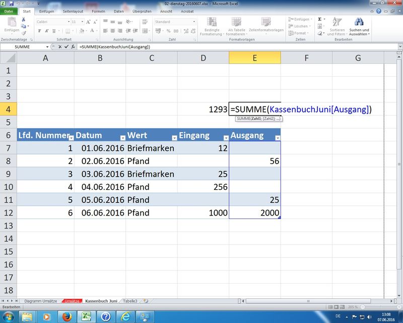 mittels Gruppieren werden die Bereiche "geschützt" und mit Tabulator nutzbar