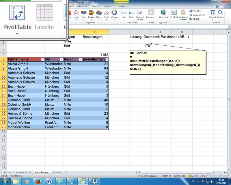 bedingte Formatierungen, Umgang mit Pivot-Tabellen, Arbeit mit mehreren Tabellen - Arbeitsoberfläche ab Excel 2007 / 2010