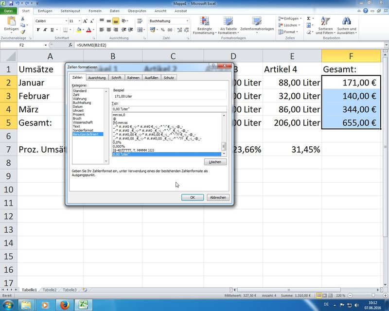Arbeiten mit Formeln und Funktionen, Verknüpfungen, Formaten; Diagramme, Zählen von Werten bestimmten Typs in einer Spalte,