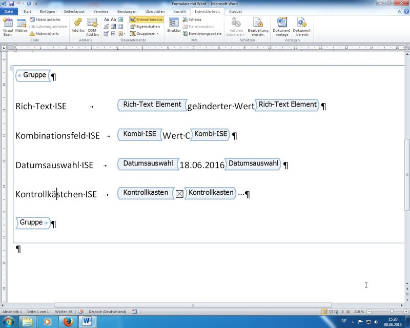 Formulare mit Word (ISE - Inhaltssteuerelemente)