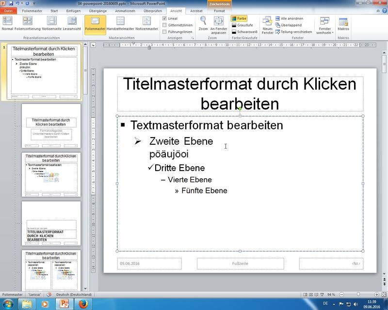 Bearbeitung und Anpassung der "Formatierungen und Designs" unserer Präsentationen