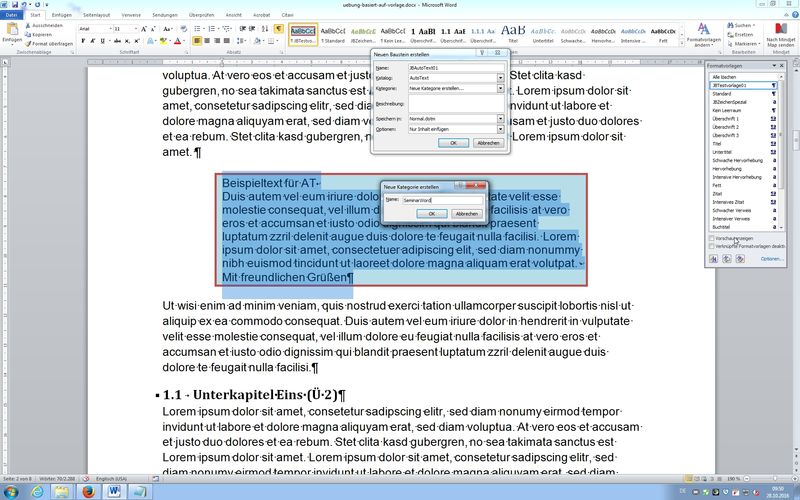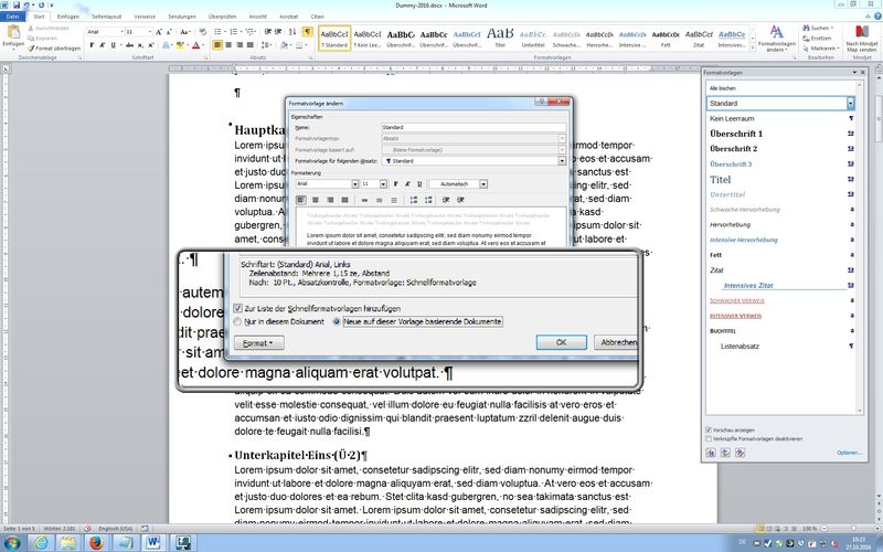 Übung zu den Formatvorlagen: Bereitstellung eines "Dummy"-Dokuments für die Übungen