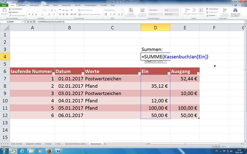 Beachten: erste Spalte aufwärts alphanumerisch sortiert und Einstiegswert (kleinster möglicher Wert) sollte in der ersten Zeile berücksichtigt werden