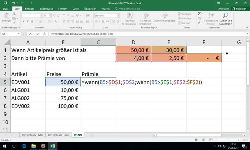 - Tag 5 - Do. 04.05.2017 - Excel 2016 Fortg.